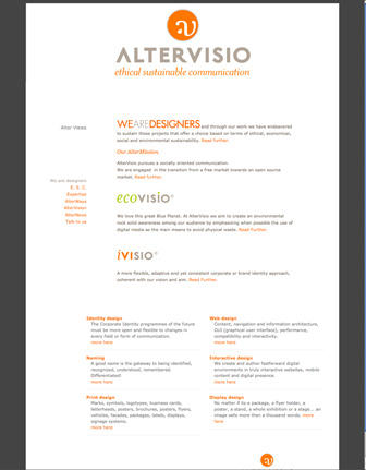 In 2007 I created a FedericoGrafia's spin-off company intended to present in a more business oriented approach my pro-Earth gtreen design (beyond the hyped ecological blah, blah, blah), thus AlterVisio, Ethical Sustainable Communication came into existence:
