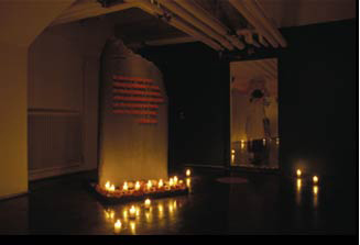 2. A path of lit candles to indicate the access to the exhibition and symbolise the path and entrance to the "World of the Death".