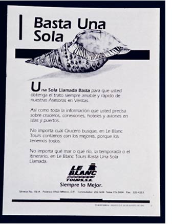 ("Basta una sola llamada", the Spanish for "A single call is enough")supported with a visual metaphor conveyed by an illustrated Seashell (a call) a strong message and visual hook is achieved.